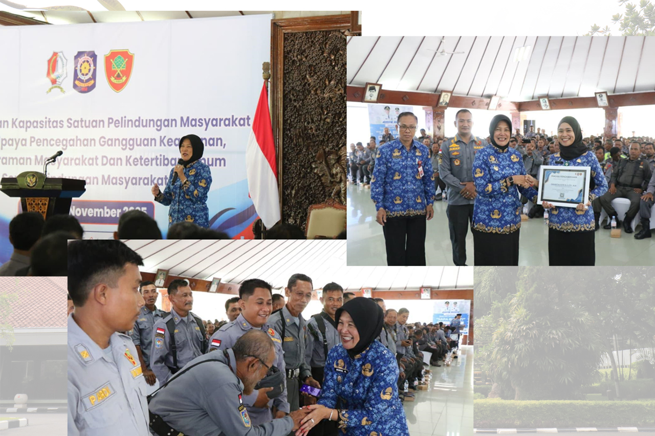 Bojonegoro 17/11/2025, Satuan Polisi Pamong Praja Kabupaten Bojonegoro (Satpol PP) menggelar kegiatan peningkatan kapasitas Satuan Perlindungan Masyarakat (Satlinmas) dalam upaya pencegahan gangguan keamanan dan ketertiban umum (Trantibum) di Kabupaten Bojonegoro. Kegiatan yang berlangsung di Pendopo Malowopati Pemkab Bojonegoro ini diikuti sebanyak 430 orang Satlinmas yang terdiri dari 419 Desa dan 11 kelurahan se-kabupaten Bojonegoro yang dihadiri oleh Wakil Bupati Bojonegoro Nurul Azizah, pelaksana harian (plh) Kasatpol PP Bojonegoro, 28 Kasi Trantib Kecamatan dan beberapa kepala OPD.