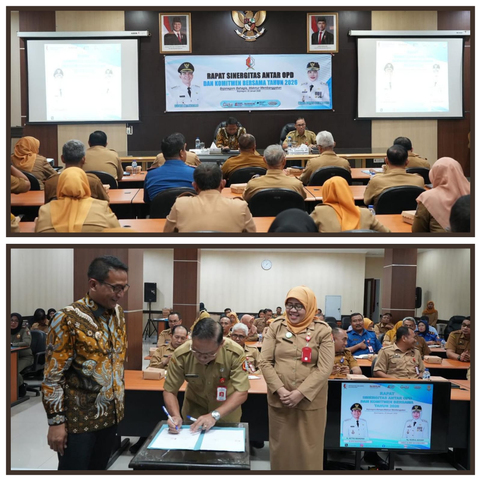 Bojonegoro (20/01/2026) – Satuan Polisi Pamong Praja (Satpol PP) Kabupaten Bojonegoro melakukan rapat koordinasi penguatan sinergitas antar Organisasi Perangkat Daerah (OPD) dalam rangka penguatan penyelenggaraan ketentraman, ketertiban umum dan perlindungan masyarakat (Trantibumlinmas) di Kabupaten Bojonegoro. Kegiatan ini berlangsung di Ruang Creative Room Lantai 6 gedung Pemkab Bojonegoro bertujuan untuk menyamakan persepsi dan langkah strategis dalam penegakan Peraturan Daerah (Perda) dan Peraturan Kepala Daerah (Perkada) di semua OPD. Kegiatan ini dihadiri oleh Bupati Bojonegoro, Pelaksana harian (Plh) Kepala Satpol PP, serta 19 Kepala OPD.